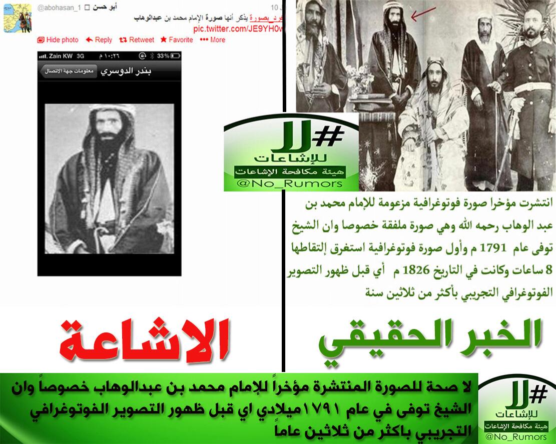 يبغي نآشريها الفتنة بين المسلمين فلم يكن في ذلك الوقت أجهزة تصوير في المنطقة و زيادة على ذلك لم يكن الشيخ رحمة الله ان يرضى بذلك فالشيخ ولد عام 1115 هـ.